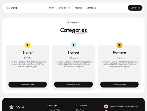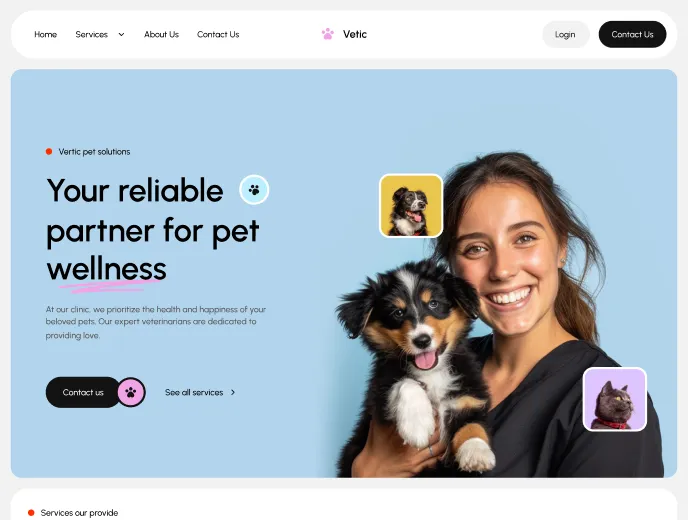 Take a look at the main pages included in the Vetic Template.